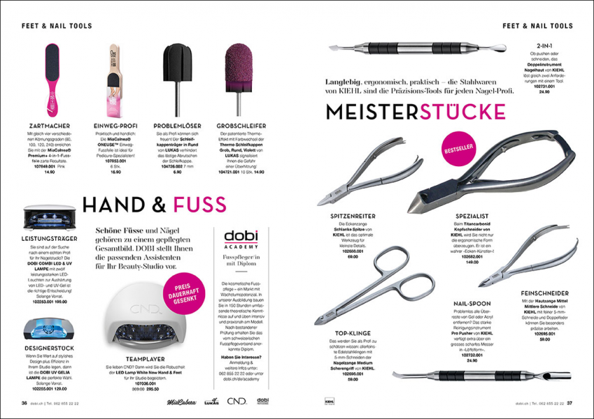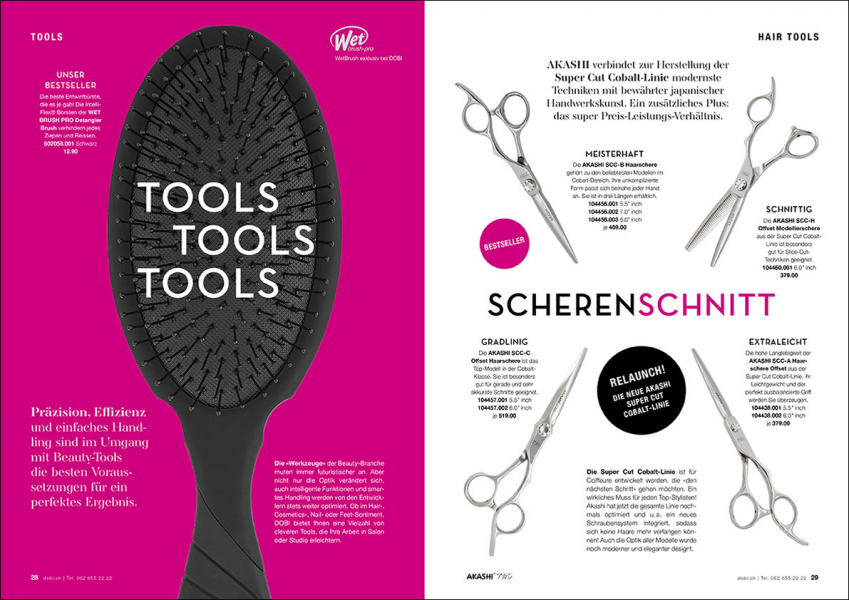 DOBI Professional is the largest beauty retailer in Switzerland and one of the leading retailers in Europe. Hairdressers, stylists and beauty professionals can get everything they need in the hair, nail, cosmetics and feet sector: from nail scissors to hairdressing chairs. And on top of that, every month they also offer a magazine, that not only shows the right products for everyday hairdressing, but also presents new trends and techniques.