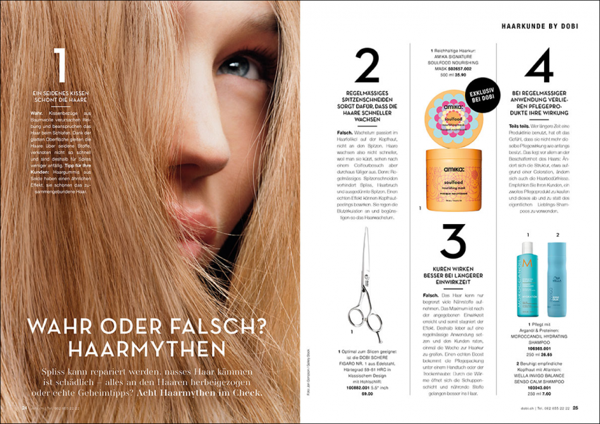 As the largest beauty retailer in Switzerland DOBI Professional supplies hairdressers, stylists and the like with everything they need for everyday hairdressing. With their magazine "Beauty Inspiration", which is published 12 times a year, the specialty retailer not only strengthens its brand image, but also offers beauty inspiration.